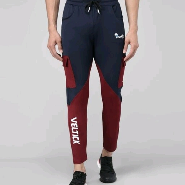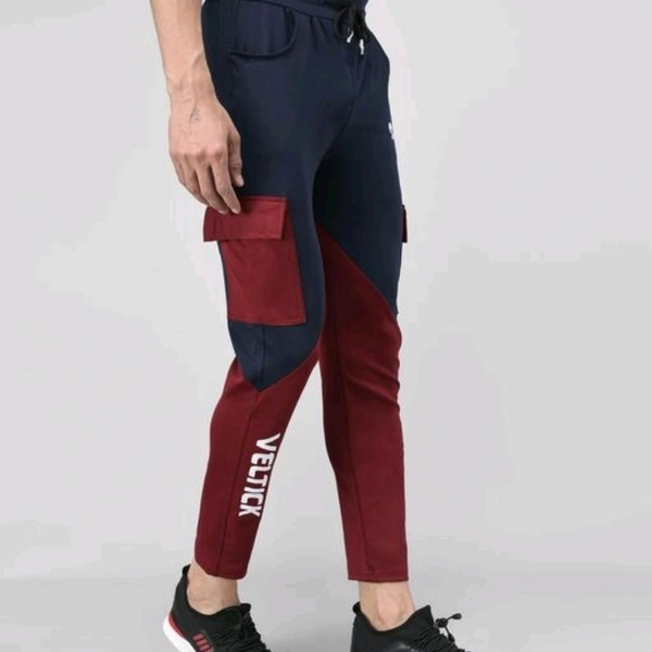 Pitara Men's Lycra ColorBlock Blue & Maroon Track Pant (SFC-MTP-011)