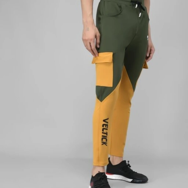 Pitara Men's Lycra ColorBlock Green & Mustard Track Pant (SFC-MTP-012)