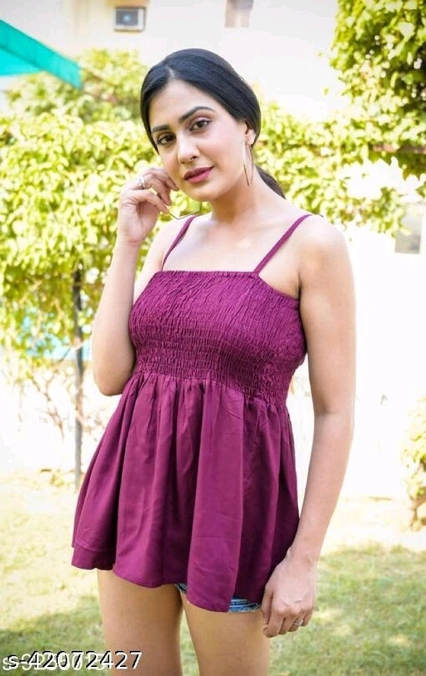 Pretty Fabulous Women Tops & Tunics Fabric: Rayon Sleeve Length: Sleeveless Pattern: Self-Design Multipack: 1 Sizes: S (Bust Size: 36 in, Length Size: 30 in) XL (Bust Size: 42 in, Length Size: 30 in) L (Bust Size: 40 in, Length Size: 30 in) M (Bust Size: 38 in, Length Size: 30 in) XXL (Bust Size: 44 in, Length Size: 30 in) XXXL (Bust Size: 46 in, Length Size: 30 in) PRG TRENDY WOMEN TOPS & TUNICS Country of Origin: India