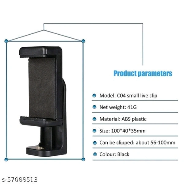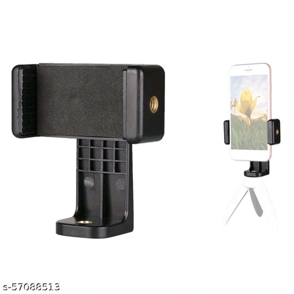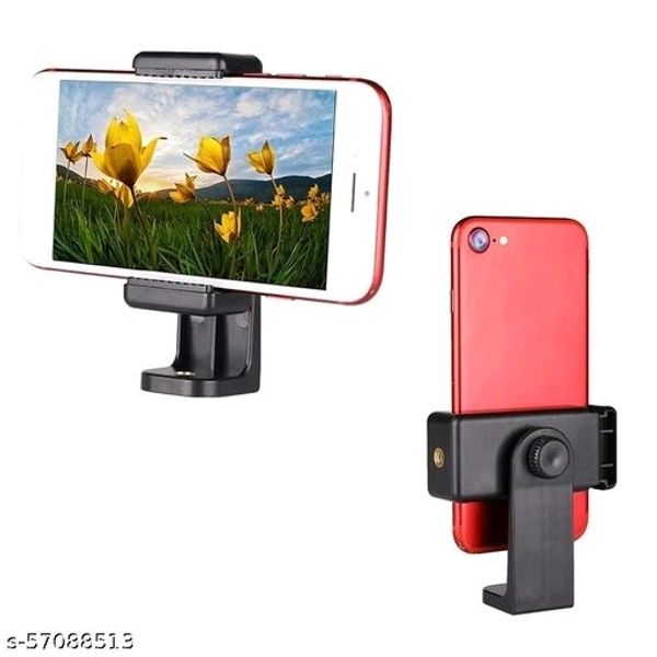 Rhymestore® Mount Adapter/Vertical Bracket Holder Clip 360 Degree Tripod Clamp for All Smartphones- Black