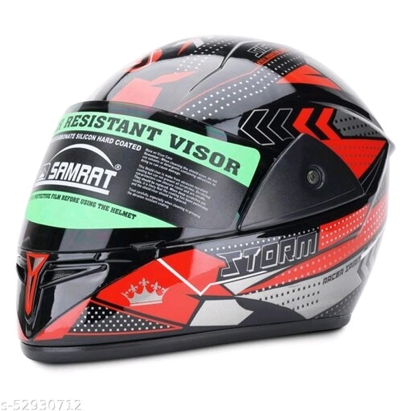 SAMRAT HELMET(Storm Red) with P.C. visor(anti UV and scratch proof) built with ABS Material shell