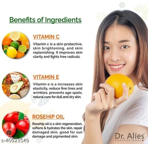 Dr. Alies Vitamin C serum is a unique formulation of natural ingredients with the essential vitamins and Hyaluronic Acid. It helps to enhance your beauty by adding a glow to your skin. Its hydrating property keeps your skins supple soft and moist throughout the day. Regular use of this lightweight firming serum can help bring a visible glow to your Skin.
