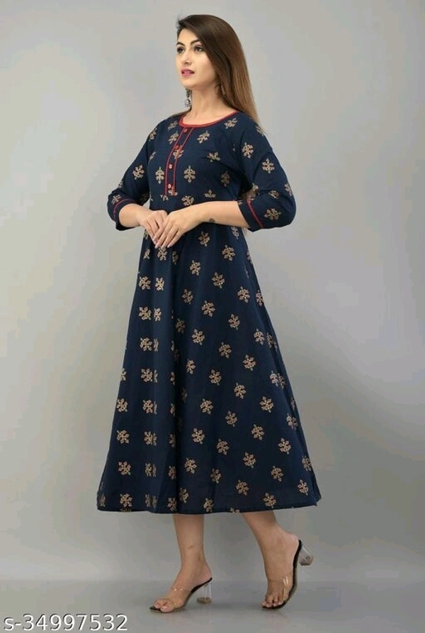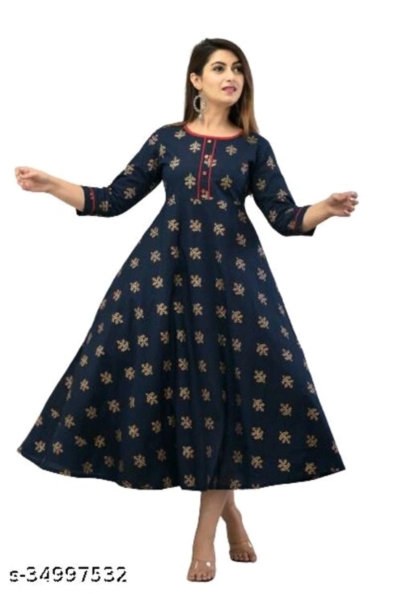 SHIVAKSHI Women Anarkali Gown Printed Blue Cotton Kurti Fabric: Cotton Sleeve Length: Three-Quarter Sleeves Pattern: Printed Combo of: Single Sizes: S (Bust Size: 36 in, Size Length: 52 in) XL (Bust Size: 42 in, Size Length: 52 in) L (Bust Size: 40 in, Size Length: 52 in) M (Bust Size: 38 in, Size Length: 52 in) XXL (Bust Size: 44 in, Size Length: 52 in) This is designed as per the latest trends to keep you in sync with high fashion and with wedding and other occasion, it will keep you comfortable all day long. The lovely design forms a substantial feature of this wear. It looks stunning every time you match it with accessories. Disclaimer: product colour may slightly vary due to photographic lighting sources or your monitor settings. Country of Origin: India