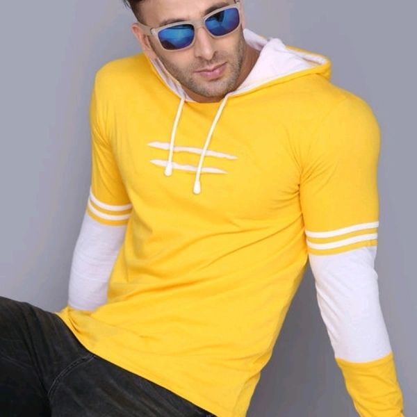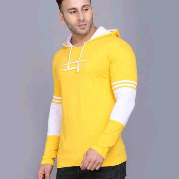 SIDKRT Solid Men Hooded Neck Tshirt Fabric: Cotton Sleeve Length: Long Sleeves Pattern: Striped Multipack: 1 Sizes: S (Chest Size: 40 in, Length Size: 26.5 in) XL (Chest Size: 40 in, Length Size: 27.5 in) L (Chest Size: 40 in, Length Size: 27.5 in) M (Chest Size: 40 in, Length Size: 27 in) Country of Origin: India