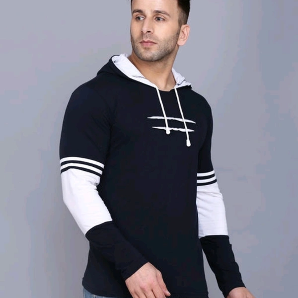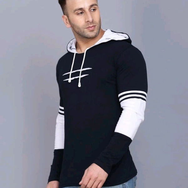 SIDKRT Solid Men Hooded Neck Tshirt Fabric: Cotton Sleeve Length: Long Sleeves Pattern: Striped Multipack: 1 Sizes: S (Chest Size: 40 in, Length Size: 26.5 in) XL (Chest Size: 40 in, Length Size: 27.5 in) L (Chest Size: 40 in, Length Size: 27.5 in) M (Chest Size: 40 in, Length Size: 27 in) Country of Origin: India