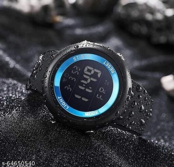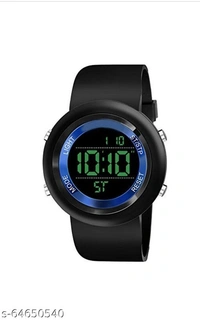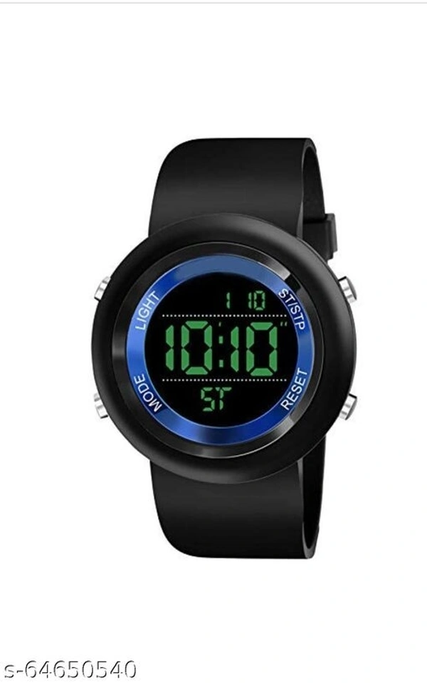 Sport watch Date and day digital watch black belt white dail green light day .dual time and timar