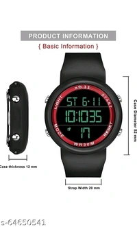 Sport watch Date and day digital watch black belt white dail green light day .dual time and timar