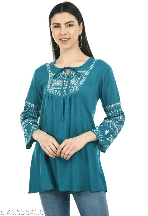 Stylish Latest Women Tops & Tunics Fabric: Rayon Sizes: S (Bust Size: 35 in) XL (Bust Size: 41 in) XS (Bust Size: 33 in) L (Bust Size: 39 in) M (Bust Size: 37 in) XXL (Bust Size: 43 in) Country of Origin: India