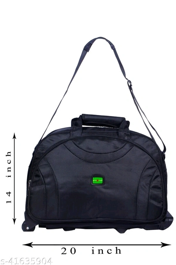 Attraction bag brings to you this stylish travel duffel which is made from polyester and is blue in colour. It has a durable design and comes with compartments on the front and on the sides for that extra amount of space you need.The duffel bag features a main compartment along with an ample capacity of 30 liters.The duffel bag comes with wheels to carry the luggage around for mobility.The duffel bag features adjustable straps which can be raised across the shoulders or back and provide comfort while you are carrying the luggage with ease when you are out for a vacation or on a trip. The trolley design helps you to carry the duffel bag with ea