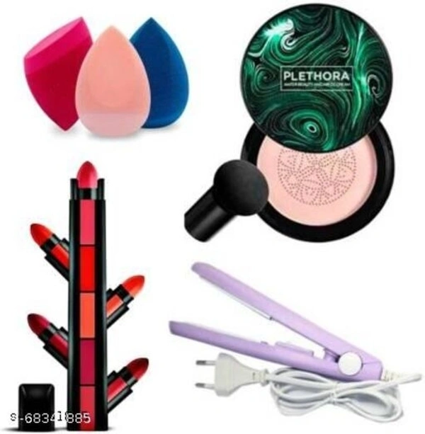 Sunisa 3 in 1 Air Cushion Mushroom Head CC Cream Foundation & Mini Hair Straightner & 5 Step Mate Lipstick & 3 Pcs Spounge Puff (12 Items in the set)