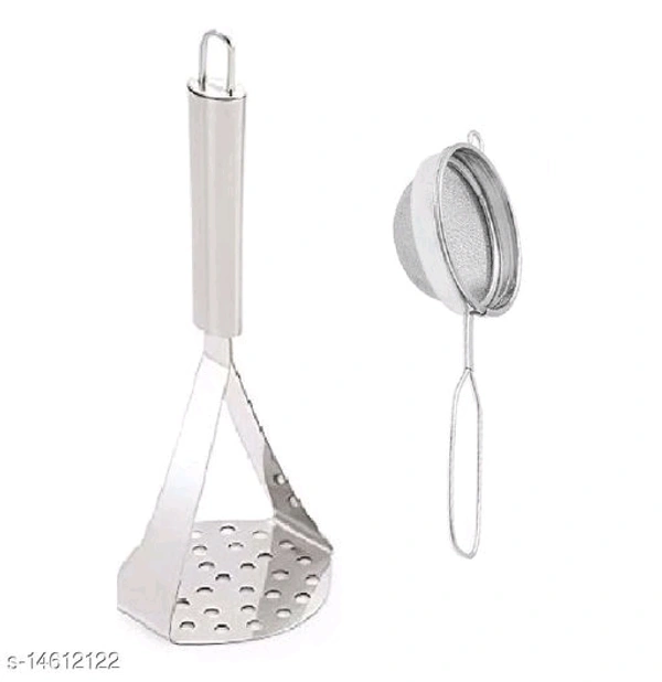 Trending Kitchen Combo of Stainless Steel Potato Masher and Stainless Steel TeaCoffee Strainer.
