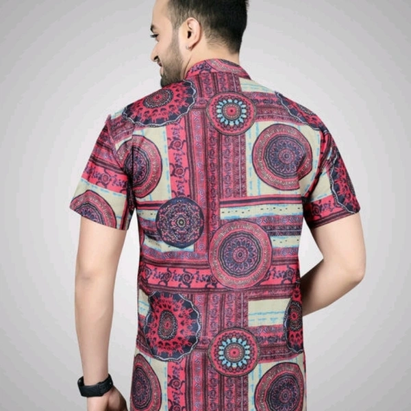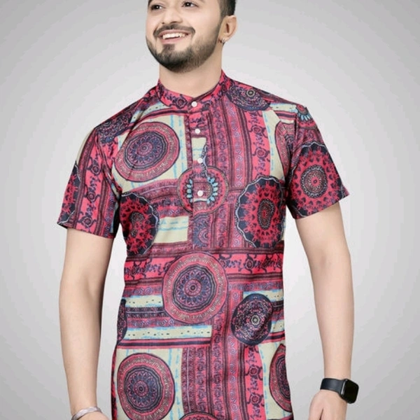 Trendy Elegant Men Shirts Fabric: Cotton Sleeve Length: Short Sleeves Pattern: Printed Multipack: 1 Sizes: S (Chest Size: 38 in, Length Size: 27.5 in) XL (Chest Size: 44 in, Length Size: 30.5 in) L (Chest Size: 42 in, Length Size: 29.5 in) M (Chest Size: 40 in, Length Size: 28.5 in) XXL (Chest Size: 46 in, Length Size: 31 in) Matema Men's Style Digital Cotton Printed Casual Stitched Half Sleeve Kurta Type Shirts | Care Instructions: Hand Wash Only | Fit Type: Regular Fit | Item Type: Kurata Type Shirts | Neck Style: Classic Collar | Fit Type: Regular Fit | Material - 100% Cotton | Color-As show in image | Suitable for: Sports, formal, Business Work, Date, Party, Perfect gift for families, friends and boyfriend | Pattern Type: Digital Printed Shirt Country of Origin: India