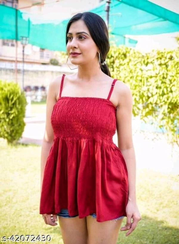 Trendy Feminine Women Tops & Tunics Fabric: Rayon Sleeve Length: Sleeveless Pattern: Self-Design Multipack: 1 Sizes: S (Bust Size: 36 in, Length Size: 30 in) XL (Bust Size: 42 in, Length Size: 30 in) L (Bust Size: 40 in, Length Size: 30 in) M (Bust Size: 38 in, Length Size: 30 in) XXL (Bust Size: 44 in, Length Size: 30 in) PRG TRENDY WOMEN TOPS & TUNICS Country of Origin: India