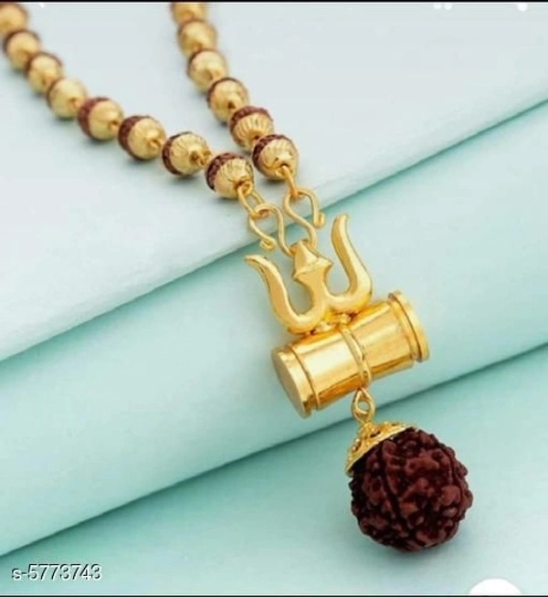 Trendy Men's Golden Damaru Locket Rudraksha Chain