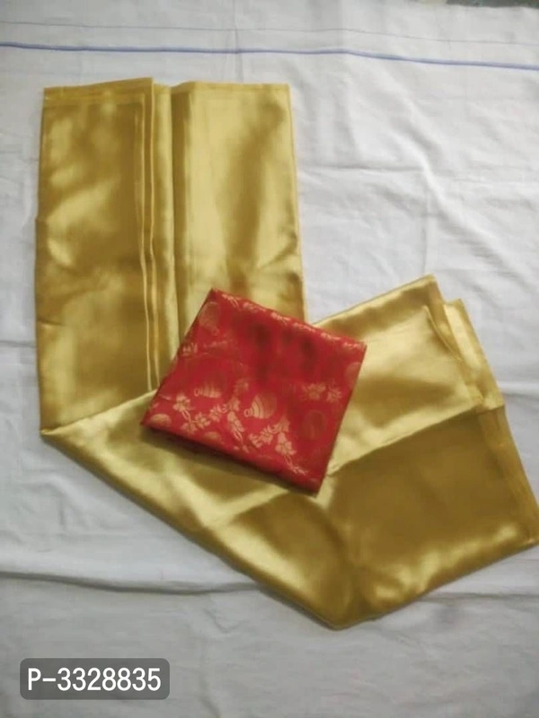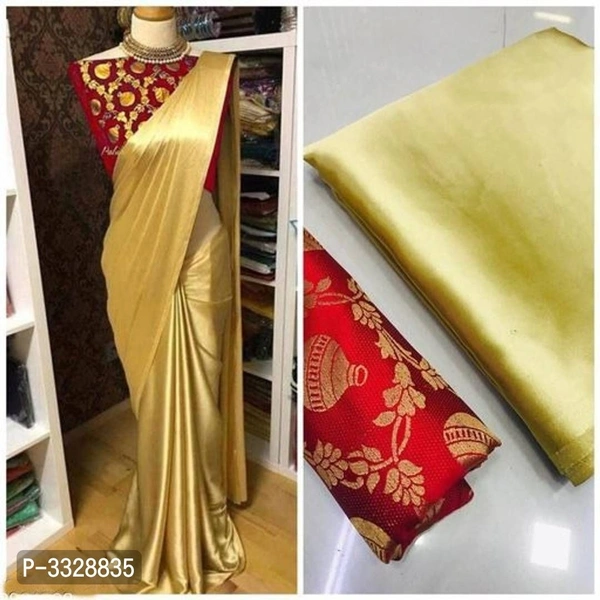 Trendy Satin Solid Saree with Blouse piece Color: Golden Fabric: Satin Type: Saree with Blouse piece Style: Solid Design Type: Bollywood Saree Length: 5.5 (in metres) Blouse Length: 0.85 (in metres) Within 7-9 business days However, to find out an actual date of delivery, please enter your pin code. New Trendy Satin Solid Saree with Blouse piece Work- Saree- Solid And Blouse Jacquard, Wash Care: Dry Clean Or Else Normal Hand Wash, Occasion: Casual Wear or Party Wear, Note- It Has 1 Piece of Saree With Blouse Piece