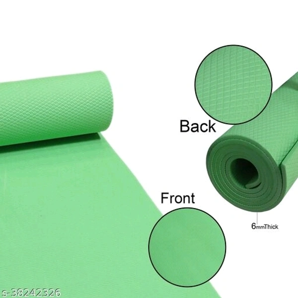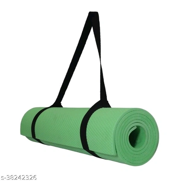 Anti Skid Yoga mat for Gym Workout and Flooring Exercise with Carrying Strap Long Size Yoga Mat for Men AND Women. All-Purpose Premium exercise yoga mat comes with an excellent slip resistant advantage to prevent injuries. Exceptional resilience allow you to keep your balance during any exercise style. Moisture resistant technology makes the mat to be easily washed with soap and water. Easy strapping and light weight feature are added to this mat for easy transport and storage. 6mm thick anti-skid yoga mat is perfect for yoga workout and other floor exercises Economical and practical, it can work for a long time. Material: Ethylene Vinyl Acetate Size: Free size Thickness: 6MM Length: 6 Feet Width: 2 Feet Product Care Instructions: Please clean before using, clean regularly and keep it dry for healthy use
