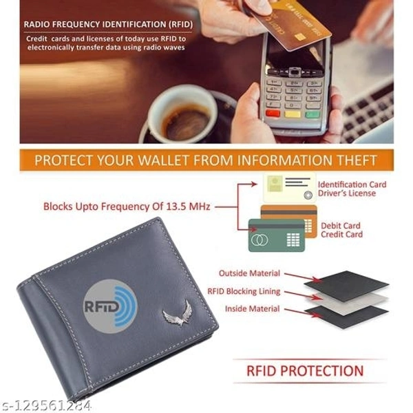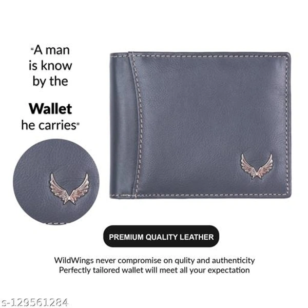 Material: Leather No. of Compartments: 2 Pattern: Solid Net Quantity (N): 1 Sizes: Free Size (Length Size: 11 cm, Width Size: 10 cm) Name : WILDWINGS (LABEL) Genuine Leather Men’s New Generation Stylish Wallet | Leather Wallet for Men | RFID Blocking Men’s Wallet This Leather Men’s Wallet from “WILDWINGS” is a great choice for daily use wallet for Men. This wallet is made with a high-quality classic genuine full grain leather. This wallet acts as the perfect accessory to complete your look and make you stand out at an affordable price. This wallet comes with multiple card slots and an ID window with 2 secret compartments and a zipper pocket plus a coin pocket and ideal for debit/ATM/credit cards.