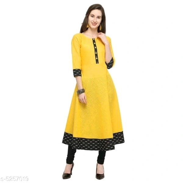 Women Cotton Blend Flared Printed Yellow Kurti