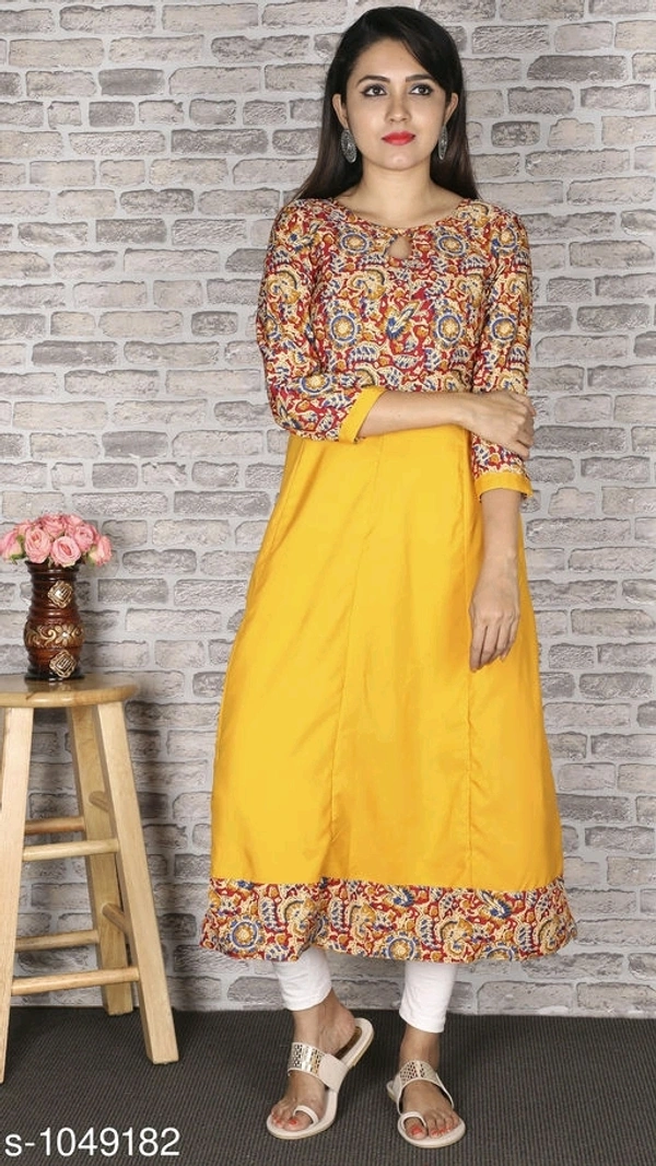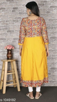 Women Crepe Flared Printed Yellow Kurti