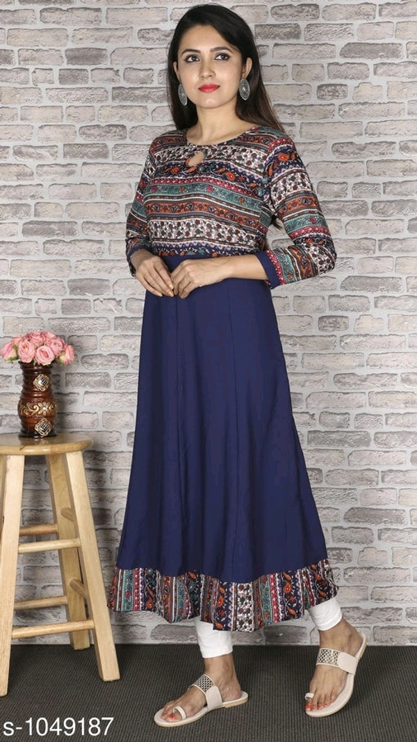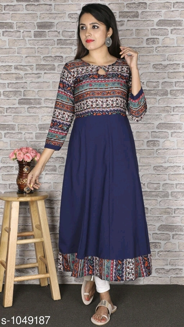 Women's Printed Crepe Anarkali Kurti Name: Women's Printed Crepe Anarkali Kurti Fabric: Crepe Sleeve Length: Three-Quarter Sleeves Pattern: Printed Combo of: Single Sizes: XS, S, M, L, XL, XXL, XXXL, 4XL, 5XL, 6XL, 7XL Country of Origin: India
